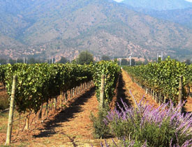 aarden. Want dankzij Pablo Morandé, destijds wijnmaker bij Concha y Toro, werd Casablanca ontdekt als wijngebied. Pablo had er een weekendhuisje en plantte daarbij op eigen initiatief gewoon wat stokken – die excellente druiven bleken te geven. Het geheim van Casablanca Valley (zoals de naam meestal wordt gebruikt) is de frisse zeewind die elke middag de temperatuur een graad of tien omlaag brengt. Deze afkoeling verlengt het groeiseizoen van de druiven met enkele weken, waardoor ze ext