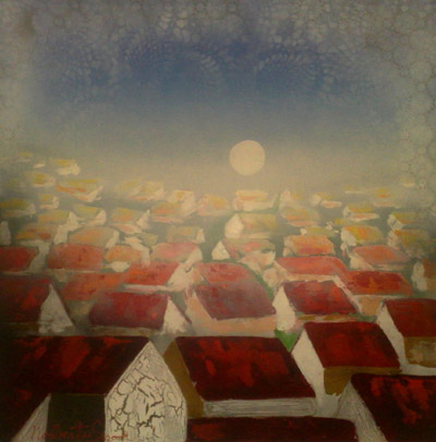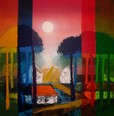“Boshuisjes”, 2008, Acryl op doek, 60x80cm, € 1400,-