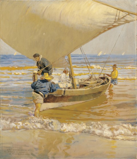 Enrique Martínez Cubells (1874-1951), Vissers die hun boot slepen