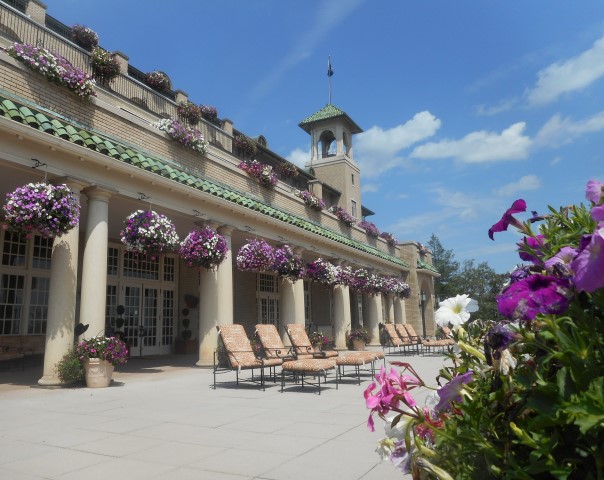 Het mooiste gebouw in de chocolade- en pretstad Hershey is The Hotel Hershey (rechts). Dit staat op een heuvel, ver van het pretparkrumoer, en heeft op de eerste verdieping zijn schitterende, pastelkleurige, rijk betegelde Fountain Lobby die met galerijen in 1934 werd gecreëerd. Erachter bevindt zich een halfrond buffetrestaurant, en ernaast het naar Rome’s beroemdste fontein genoemde, sjiek ingerichte en een groot, riant balkonterras bezittende Trevi 5. Van de grote wijnkaart bestelden wij als lunchwijn de jaartalloze Prosecco La Marca ($11 per glas) die eigenlijk prima paste bij de vrij zoete salade van jonge spinazie, gegrilde nectarine, amandelcrumble, ricotta en blauwe- bessenvinaigrette ($12). Dat bij de dubbele espresso ($6) staafjes met gevulde Hershey chocolade werden aangereikt, verbaasde helemaal niet.