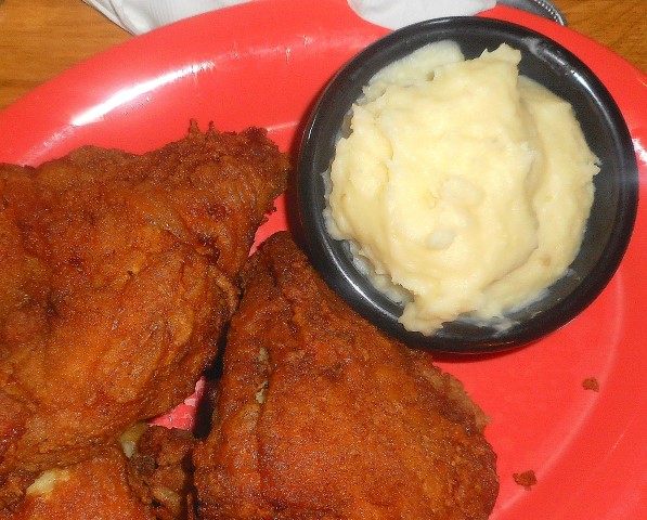 diverse schotels te proberen, zoals de milde, goede koolsla vooraf en twee hoofdgerechten tegelijk, een perfecte fried chicken met perfecte maïskorrels en lekker aardappelpuree plus jus, en daarnaast een mild smakende, heerlijke chicken pot pie. Ook het dessert is inbegrepen, bijvoorbeeld de zeer zoete, regionale shoe-flie pie of een taart van chocolade en pecannoten. Behalve ‘brews’ ofwel bieren offreert het Smokehouse diverse wijnen. Een beste begeleider van de kipgerechten is in de in Franse fusten gelagerde Chardonnay 2014 van Waltz, een toonaangevend domein in de eigen regio.