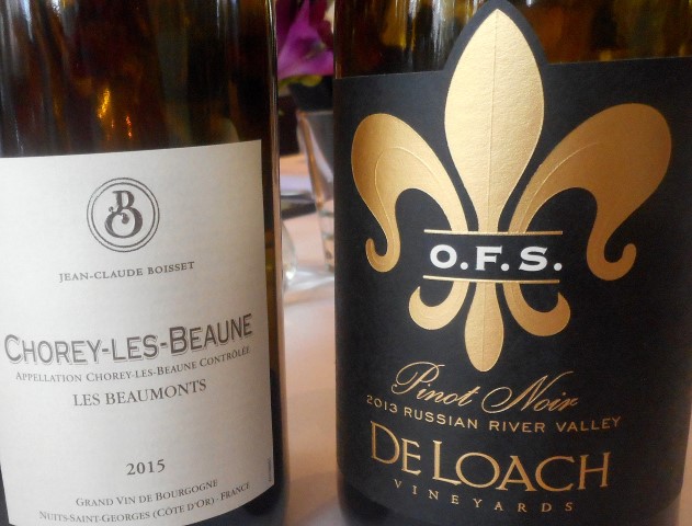 Er verschijnen vijf wijnen van beide producenten. Het proeven ervan maakt meteen duidelijk dat qua fruitigheid en charme de Californische creaties de absolute winnaars zijn. De Bourgognes hebben een meer ingetogen stijl, ze zijn ook meestal wat frisser en kruidiger, met soms donkere, dierlijke tonen. Onze Franse favoriet, mede gezien zijn relatief redelijke prijs van €23,99 is de Chorey-lès-Beaune Les Beaumonts 2015 die lekker levendig smaakt, flink bessig en beschaafd kruidig. De elega