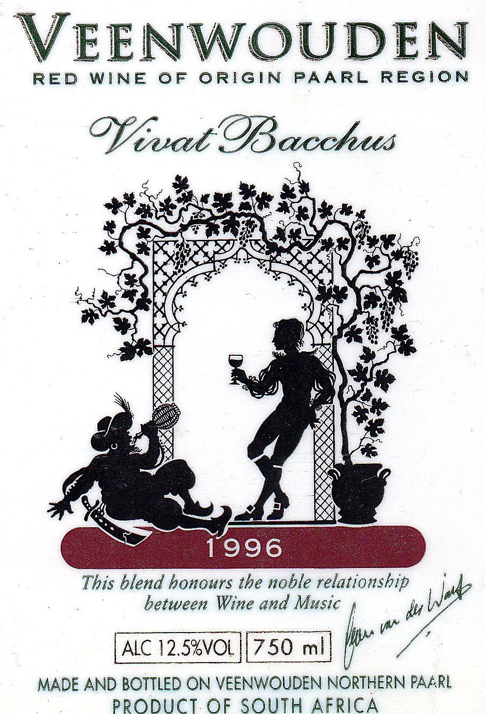 De Zuid-Afrikaanse tenor Deon van der Walt was een gevierde zanger die optrad in operahuizen overal ter wereld. Samen met zijn vader en broer Marcel plantte hij in 1989 een wijngaard van 14 hectare in Paarl, en doopte dit domein Veenwouden, naar de plaats in Friesland waar zijn voorouders vandaan kwamen. Helaas vond op 29 november 2005 een familiedrama plaats, Deon werd doodgeschoten gevonden en zijn vader had zelfmoord gepleegd. Vivat Bacchus is een loflied op de wijn uit Mozarts opera Entführung aus dem Serail. Aldus de toelichting van Bert Wentzel, jokebertwentzel@gmail.com,