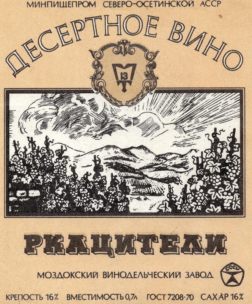 Noord-Ossetië is een deelrepubliek met eigen parlement binnen de Russische federatie Het land ligt in de Kaukasus, grenst aan Georgië, en telt ruim zevenhonderdduizend inwoners, waarvan de meesten in de hoofdstad Vladikavkaz wonen. Het afgebeelde etiket is dat van een dessertwijn met 16 procent alcohol. De wijn wordt gewonnen bij de stad Mozdok en is gemaakt van de witte rkatciteli druif. Aldus de toelichting van Bert Wentzel (jokebertwentzel@gmail.com) uit wiens omvangrijke verzameling dit etiket afkomstig is.