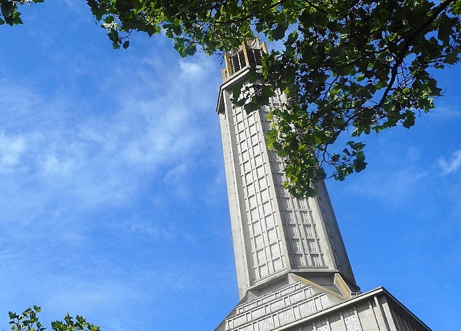 Avenue Foch staan behalve een wit reuzenrad ook een grote witte sculptuur, op het zand, waarvan de vorm lijkt op die van een schilderijlijst. Terug lopend in zuidelijke richting komt al snel de kerk Saint-Joseph in beeld. De achthoekige toren daarvan rijst tot 107 meter hoogte, en eenmaal binnenin ontdek je dat de lichtval een heel bijzondere is. Het licht komt namelijk binnen via 6500 kleine, abstract vormgegeven glas-in-lood raampjes. Deze iconische kerk voorbij, nu in oostelijk richting, wandel je al