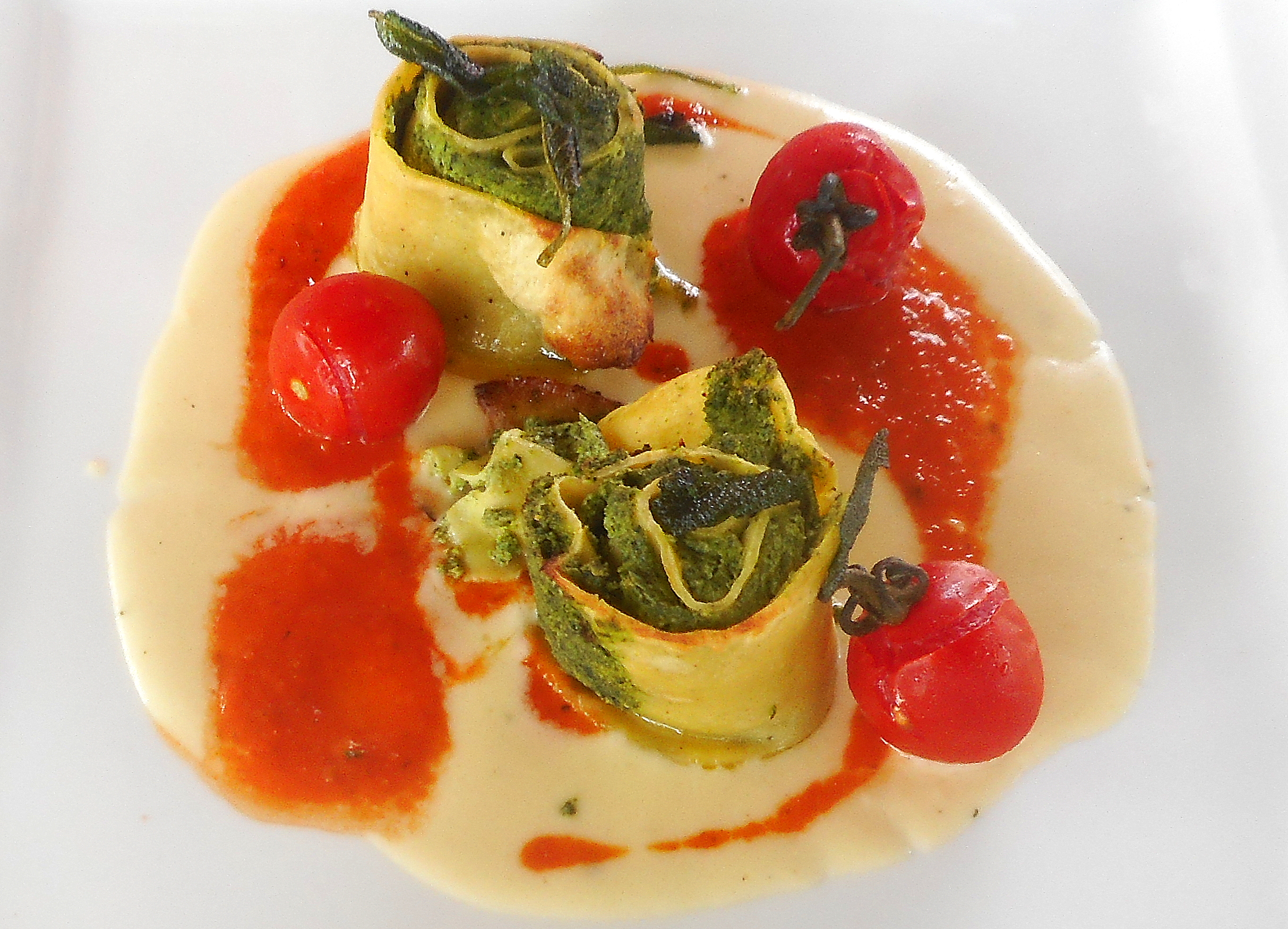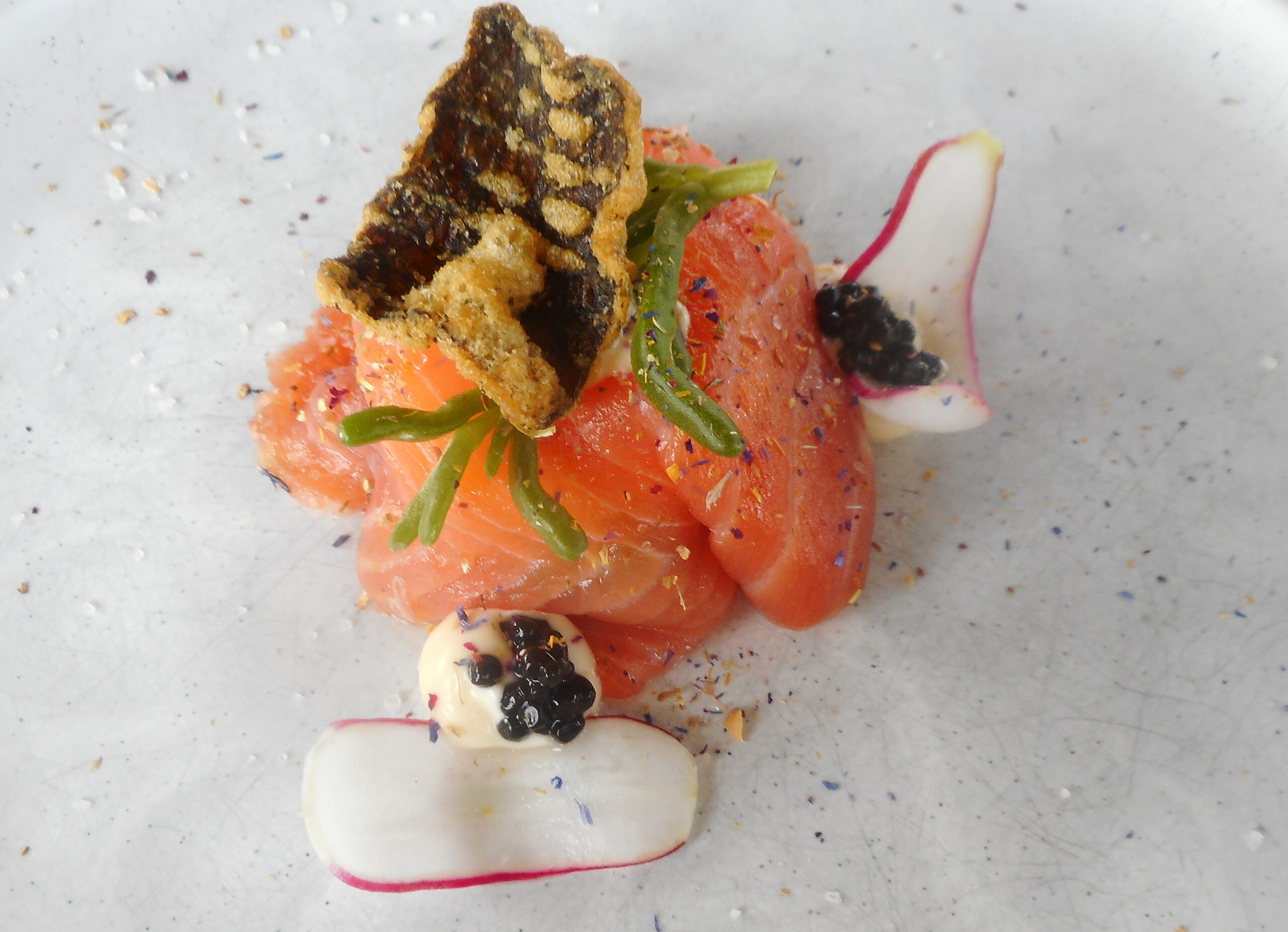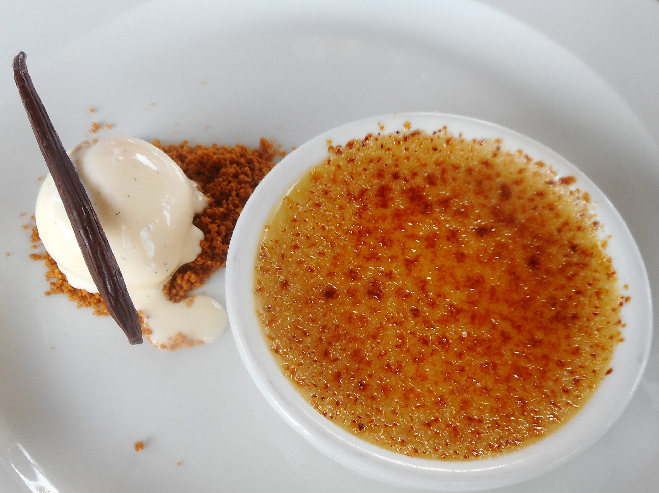 De Voetangel is een drie gangen tellend keuzemenu (€37,50). Alleen al mijn voorgerecht, een combinatie van gerookte zalm en o.m. rijpe avocado, een zacht gekookte henneneitje, yuzu mayonaise en dun geschilde radijs met daarop haringkaviaar was de reis waard, echt zalig. Ook was het zeer genieten van de vegetarische hoofdschotel, Toscaanse crespelles, flinterdunne flensrolletjes gevuld met ricotta en spinazie, en begeleid door een zachte saus van Pecorino, gefrituurde salie en gepofte kerstomaatjes – een squisito lunchgerecht. Als dessert arriveerde een perfecte crème brûlée met een bolletje voortreffelijk vanille-ijs. Al met al staken we bij De Voetangel de voeten weer gráág onder tafel.